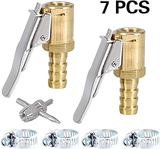 Air Chuck with Clip for Tire Inflator, Keenso Heavy Duty Closed Flow Hose Barb Clip-On Ball Foot Tire Chuck Tire/Tyre Inflator Gauge Fitting Tool Compressor Accessories : Amazon.in: Car & Motorbike Produktbeschreibungen Keenso - Dies ist ein Reifenluftfutter für die Verwendung mit einem Inflator-Messgerät. Hergestellt aus Zinklegierung mit Kupferbeschichtung, das hohe Festigkeit, verschleißfest und langlebig ist. Universal-Schnellverbinder, geschlossenes Ende, funktioniert direkt mit Reifenventil. Stabile Eigenschaften, hohe Zuverlässigkeit.