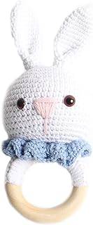 Baby Rassel in Blau - 100% Handarbeit mit Anti-Pilling Garn - Beißring für Babys - Rassel mit Tierdesign als gestrickten Hasen